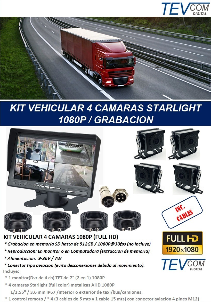 KIT VEHICULAR 4 CAM STARLIGHT 1080P-GRABACION